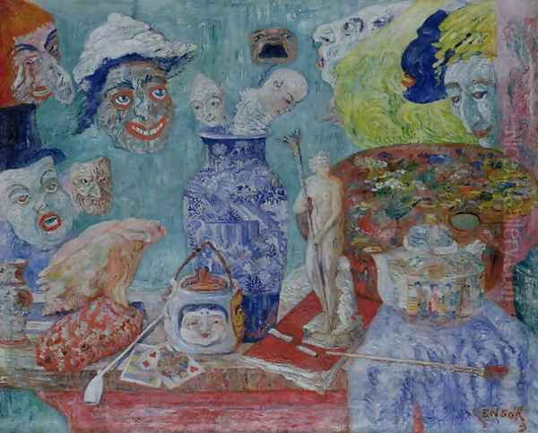 Bring the timeless beauty of James Ensor's Still Life with Masks (Bric-a-Brac) 1896 into your home with a handmade oil painting reproduction. Carefully recreated on canvas by skilled artists using traditional techniques, this piece captures the delicate brushwork, subtle light, and vibrant color of the original masterpiece. With museum-level quality and rich texture, it brings elegance and artistic depth to any space. Enjoy free shipping and make this masterpiece a part of your personal collection.