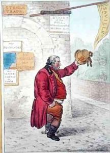 The Rights of Man or Tommy Paine the little American Taylor taking the Measure of the Crown for a new Pair of Revolution Breeches