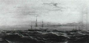 Ships On High Seas At Sunset