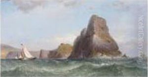 A Close Run Thing: A Barque Running Inshore Between An Island And Alighthouse
