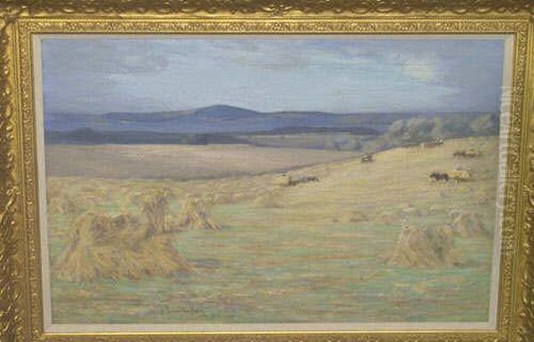 "harvest Time In Berwickshire, Cockburn Law In The Distance" Signed And Dated "1907", Also Inscribed On The Stretcher Verso, Possibly In The Artist's Own Hand