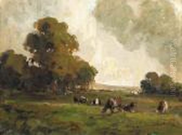 Rha Rua Landscape With Cattle Signed Lower Left Oil On Panel 38 By 51cm., 15 By 20in