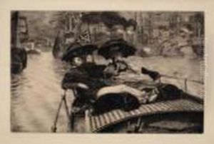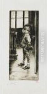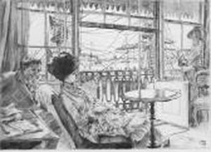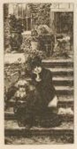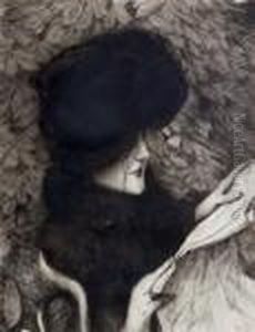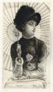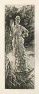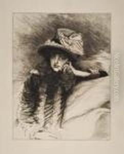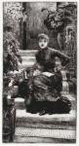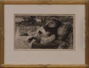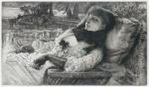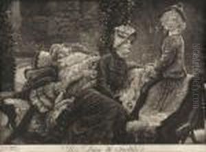 Portrait D'une Dame Cousant Pres De La Cheminee