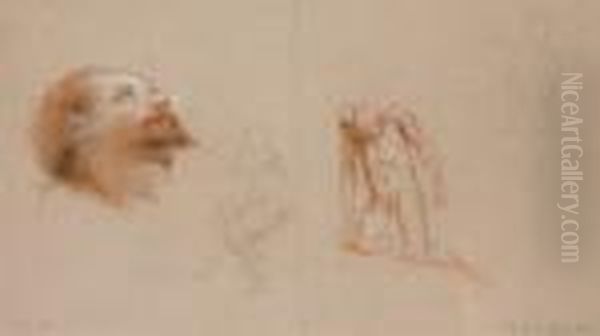 Une Tete D'homme Barbu Et Un Homme Nu A Genoux