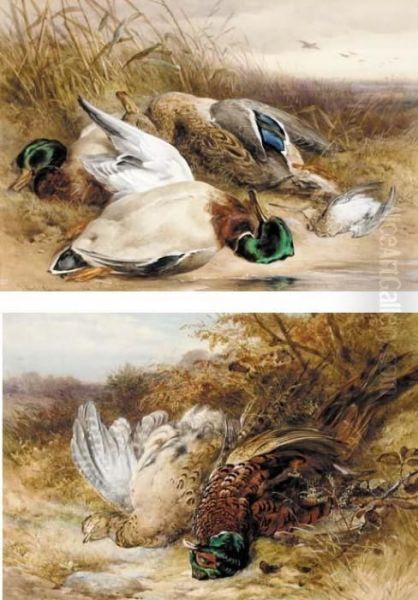 A Brace Of Pheasant On A Bank; And Mallards And A Woodcock