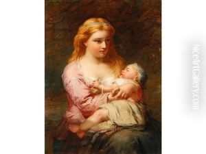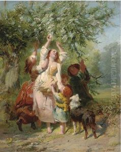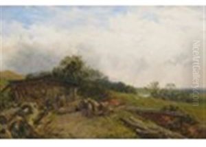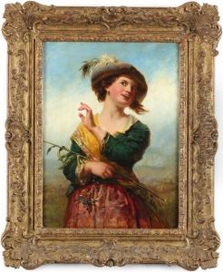 Pastoral Scene With A Shepherd And His Flock And A Child By A Fence