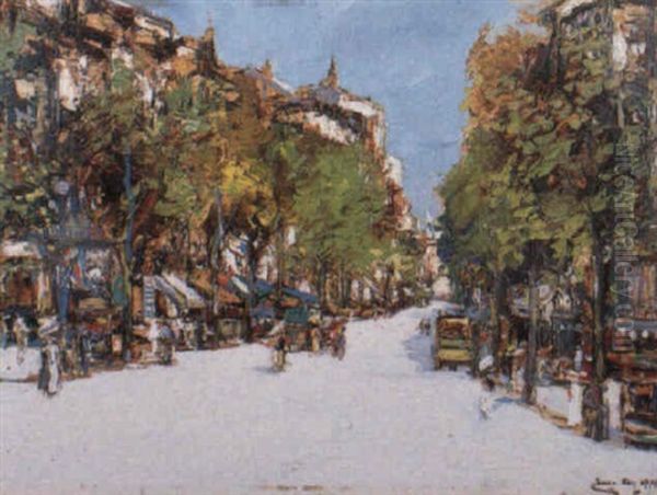 Figures In A Tree Lined Boulevard