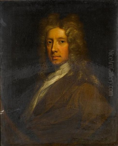 Portrait Of A Gentleman Of The Gore Family Half-length, In Dark Red Costume And White Lace Jabot