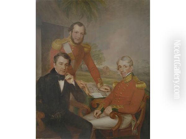 Triple Portrait Of Colonel Sir James Jackson, Major George Lee, And Major General Brice Wakeford Lee