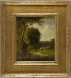 Pastoral Landscape With Cows Grazing