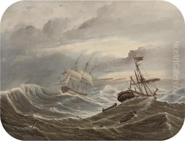 A Royal Naval Frigate Picking Up Survivors From A Ship In Distress