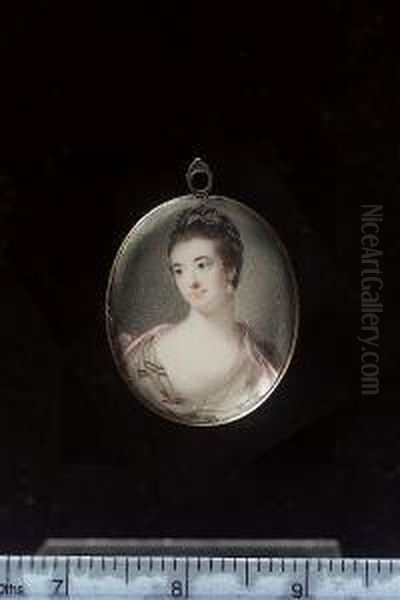 A Lady, Wearing Pale Pink Shawl Over Striped White Dress And White Underslip, A Strand Of Pearls Across Her Breast, Further Pearls And Pink Ribbon In Her Hair