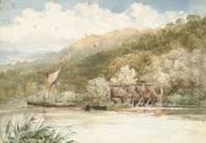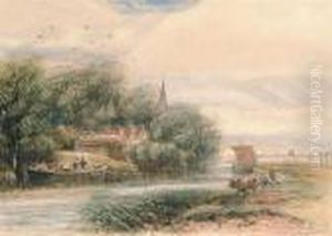Figures Beside An Old Mill In A Woodland Landscape