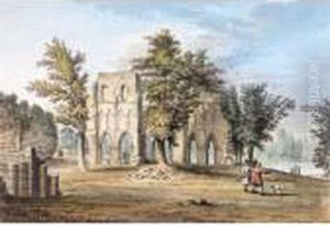 A Ruined Abbey On The Bank Of A Tranquil River