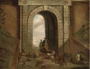 The Cambridge To London Coach; And The Manchester-to-london Coach, With A Stonebreaker In The Foreground And A Hunt Beyond