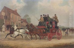 The Cambridge To London Coach (+ The Manchester-to-london Coach, Oil On Canvas; 2 Works)