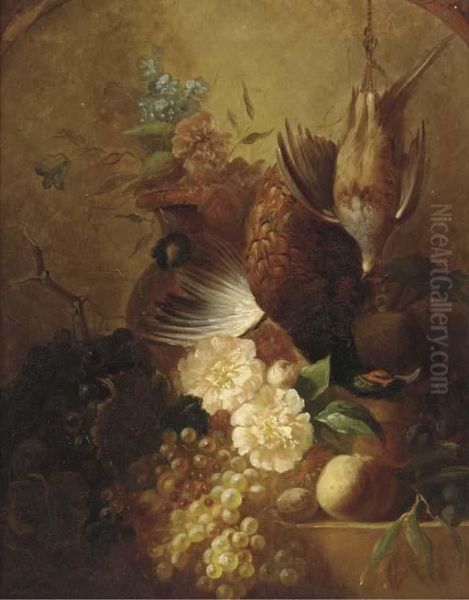 Grapes, Plums, A Peach, A Pheasant And Grouse, On A Marbleledge