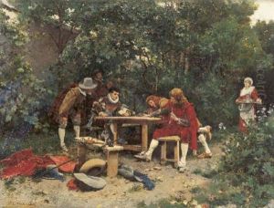 Bring the timeless beauty of James Ricks's A Game Of Cribbage- Interior Med Dortspelande Par into your home with a handmade oil painting reproduction. Carefully recreated on canvas by skilled artists using traditional techniques, this piece captures the delicate brushwork, subtle light, and vibrant color of the original masterpiece. With museum-level quality and rich texture, it brings elegance and artistic depth to any space. Enjoy free shipping and make this masterpiece a part of your personal collection.