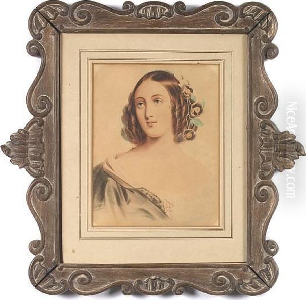 A Portrait Of A Young Lady With A Garland In Her Hair