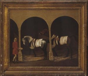 Mr. Ambrose Phillip's Two Racehorses In A Stable With A Groom