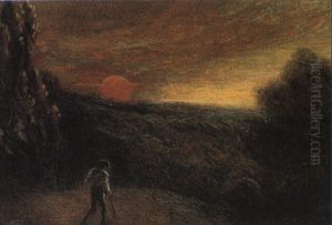 Smetham's work often reflected his deep religious convictions and his interest in literature, particularly the writings of poet John Bunyan, author of 'The Pilgrim’s Progress'. He created numerous small paintings of scenes from Bunyan's works, as well as from the Bible and other literary sources. His style is characterized by meticulous detail, vibrant colors, and intense emotion, which were hallmarks of the Pre-Raphaelite movement.