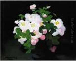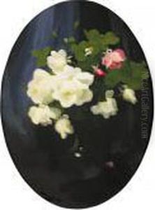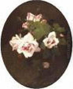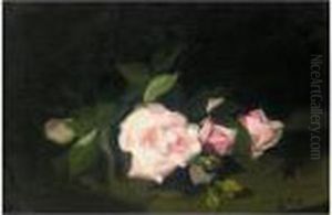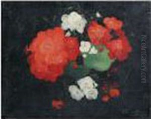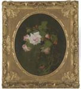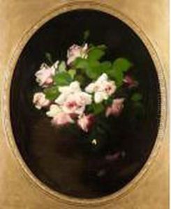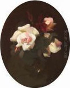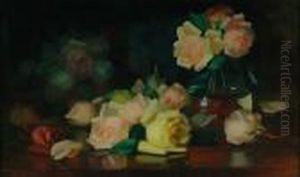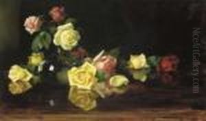Still Life With Red, Pink And Yellow Roses In A Blue Vase