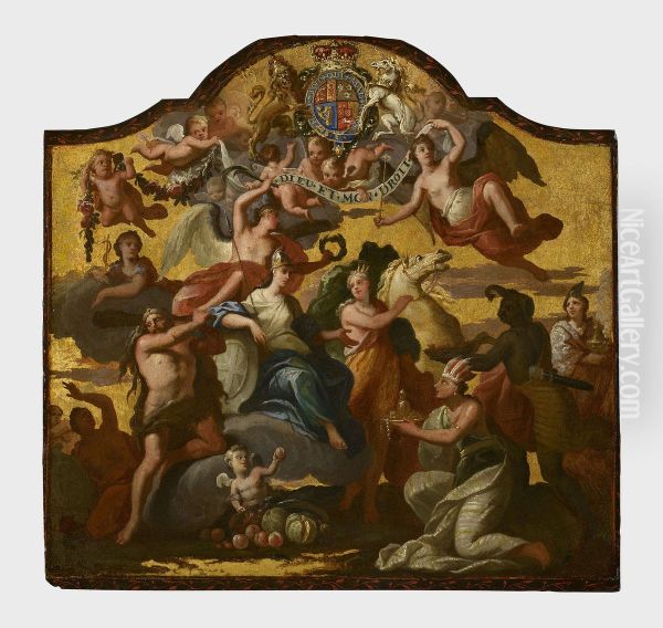 Bring the timeless beauty of James Thornhill's Britannia Receiving Homage from the Continents. into your home with a handmade oil painting reproduction. Carefully recreated on canvas by skilled artists using traditional techniques, this piece captures the delicate brushwork, subtle light, and vibrant color of the original masterpiece. With museum-level quality and rich texture, it brings elegance and artistic depth to any space. Enjoy free shipping and make this masterpiece a part of your personal collection.