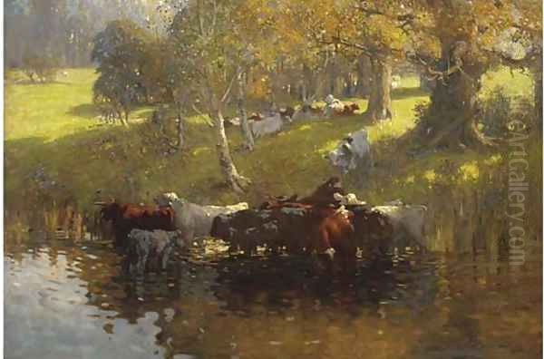 Bring the timeless beauty of James Wallace's Cattle watering on a summer's day into your home with a handmade oil painting reproduction. Carefully recreated on canvas by skilled artists using traditional techniques, this piece captures the delicate brushwork, subtle light, and vibrant color of the original masterpiece. With museum-level quality and rich texture, it brings elegance and artistic depth to any space. Enjoy free shipping and make this masterpiece a part of your personal collection.