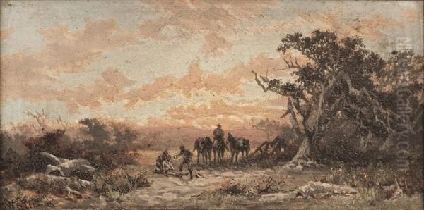 Rural Scene, Men And Horses