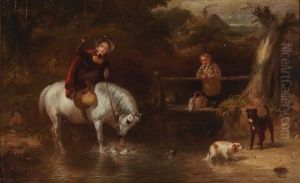 A Wooded Landscape With Figures In The Foreground And Horses And Pigs By A Cottage