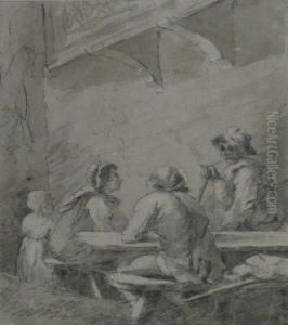 Rustic Figures Outside A Tavern