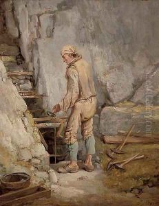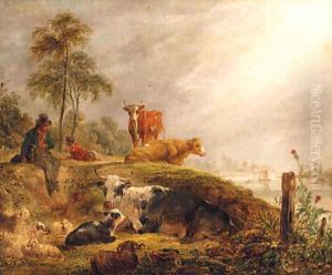 Herdsmen With Cattle And Sheep Resting By A River