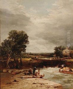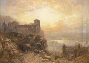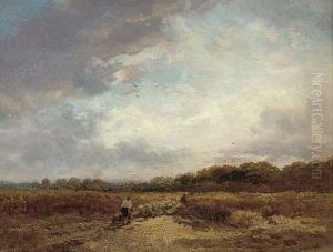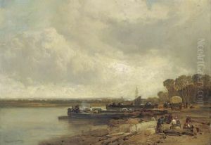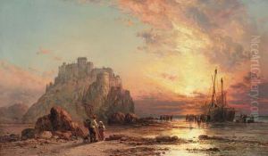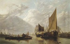 A Dutch Harbour Sunset With Figures And Fishing Boats