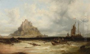 Hauling In The Nets, Thought To Be Off Dunstanburgh Castle On The Northumberland Coast