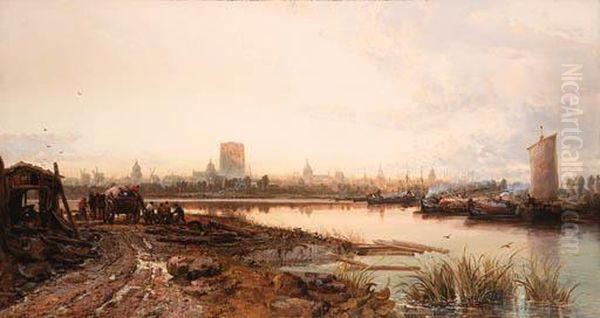 Fisherfolk On Shore At Sunset