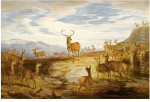 Stag And Hinds In Ahighland Landscape
