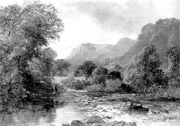 Romantische Gebirgslandschaft, An Einem Bach Ein Angler