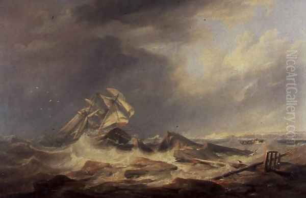 A Schooner Driven Towards Rocks