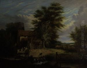 Winter Landscape With Farmers' Cottage And Abundantfigural Staffage