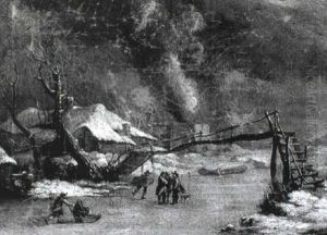 Moonlit Landscape With Herdes And Their Flock Crossing A River
