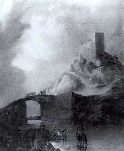 A River Landscape With A Peasant Women And A Herdsman On A Track, A Ferry And Ruin Beyond