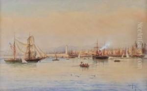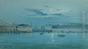 A Mediterranean Coastal Inlet At Sunset With Fishermen At The Shore