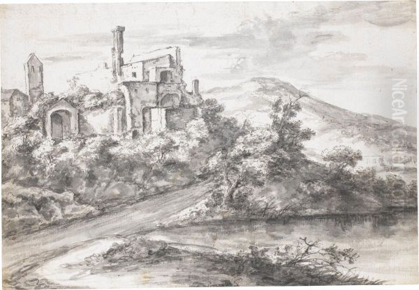 Italianate River Landscape With Ruins On The Left