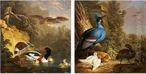 Waterbirds In A Wooded Landscape (2 Works)
