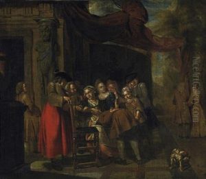 An Interior Scene With Figures Drinking And Smoking
