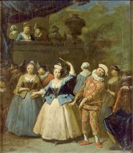 Arlequin Courtisant Une Jeune Femme (+ Arlequin Dans Un Bal; Pair)