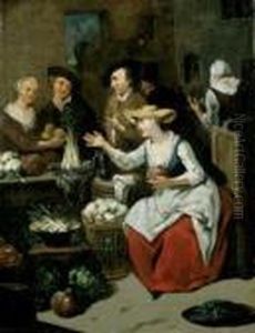 Peasants At A Table With Fruit And Vegetables In An Interior
