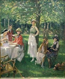 Vornehme Gesellschaft Beim Tee Im Freien