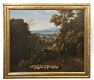 A Southern Landscape With Shepherds And Their Flock Beside A Tomb