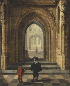 Figures In 17th Century Dress In A Church Interior